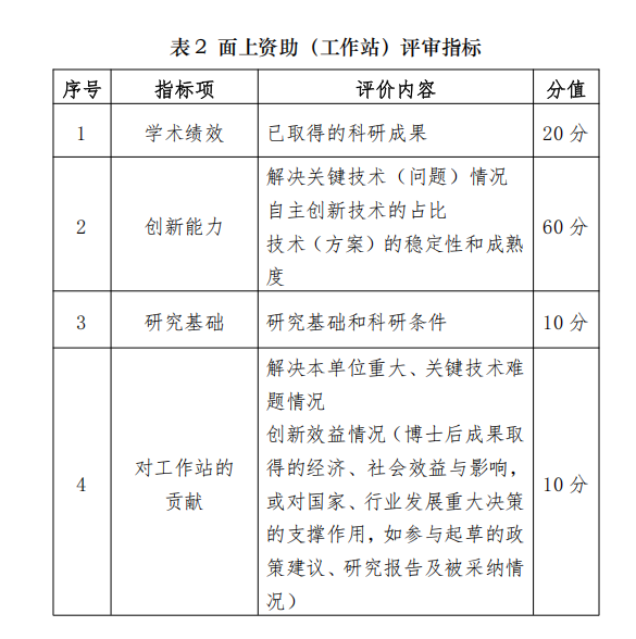 2026年中国博士后基金面上资助(工作站)评审指标